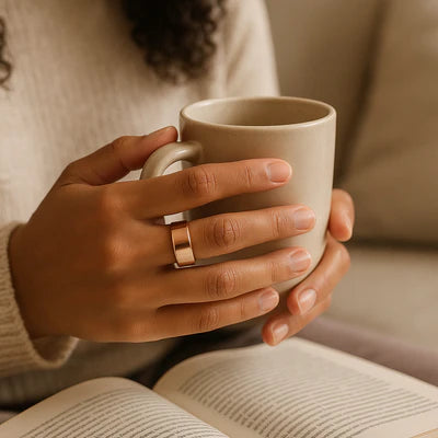 It’s a wearable wellness solution that fits your lifestyle. Sleek, subtle, and stylish, the Calmi Ring offers daily benefits without disrupting your look or routine.