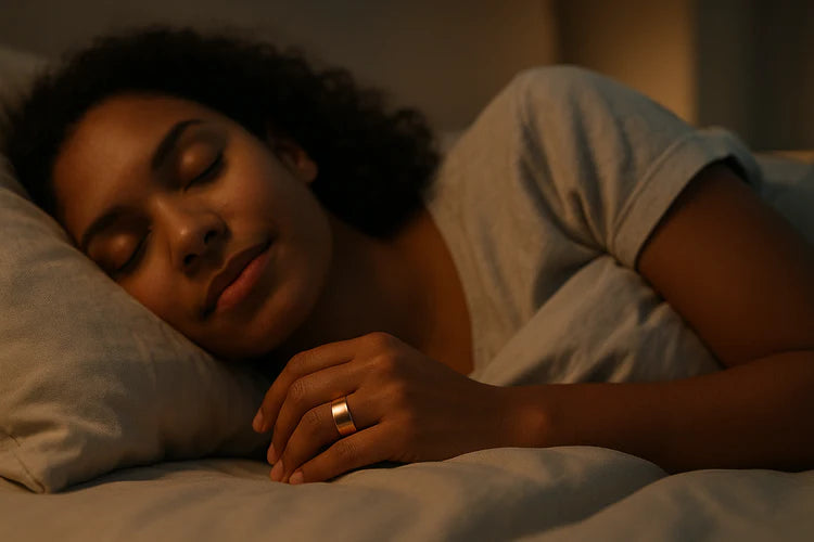 <<I’ve struggled with sleep for years. I didn’t expect a ring to change that, but Calmi has been amazing! I fall asleep quicker, and I actually wake up feeling rested now. It’s part of my nightly routine.>>